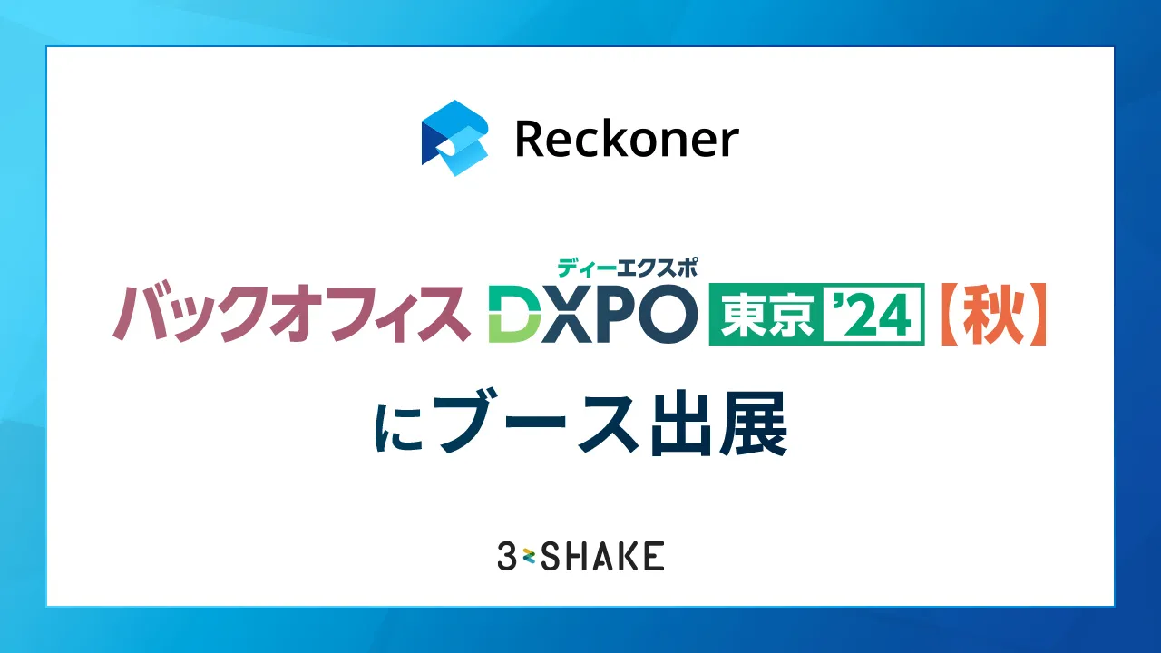株式会社スリーシェイク(本社:東京都新宿区、代表取締役社長:吉田 拓真、以下スリーシェイク)が提供する、クラウド型データ連携ツール「Reckoner(レコナー)」は、2024年11月19日(火)〜20日(水)に東京ビッグサイトで開催される「第1回 バックオフィスDXPO 東京’24(秋)」にブース出展することをお知らせします。