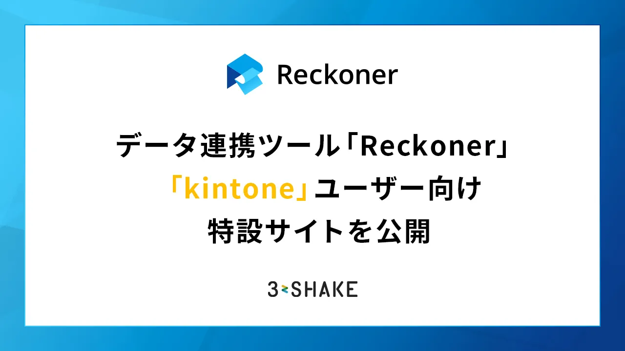 株式会社スリーシェイク(本社:東京都新宿区、代表取締役社長:吉田 拓真、以下スリーシェイク)が提供する、クラウド型データ連携ツール「Reckoner(レコナー)」は、「kintone」ユーザー向けの特設サイトを公開したことをお知らせします。本特設サイトは、「kintone」ユーザーが「Reckoner」を通じてデータの効率的な連携や活用を図るための情報を提供し、データ活用における課題解決をサポートすることを目的としています。