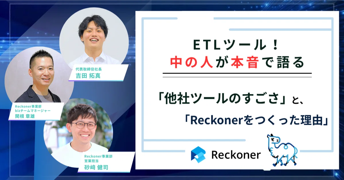 ETLツールをつくる・届ける立場にある私たちが、あえて語る「他社ツールのすごさ」と「Reckonerを生んだ理由」。DataSpider、ASTERIA Warp、TROCCO、それぞれの魅力と、Reckonerが目指すもう一つの選択肢とは。