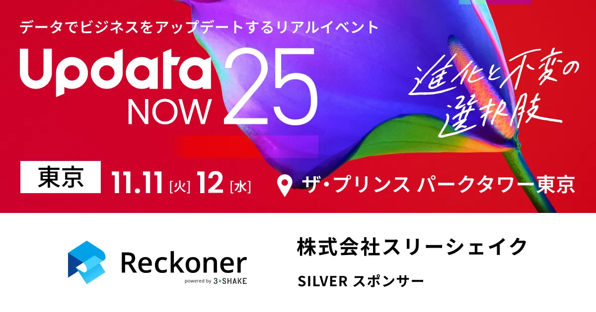 株式会社スリーシェイク(本社:東京都新宿区、代表取締役社長:吉田 拓真、以下スリーシェイク)は、ウイングアーク1st株式会社が主催する国内最大級のビジネスカンファレンス「UpdataNOW25」にシルバースポンサーとして協賛します。あわせて、スリーシェイクが提供するクラウド型データ連携ツール「Reckoner(レコナー)」のブース出展を行うことをお知らせします。