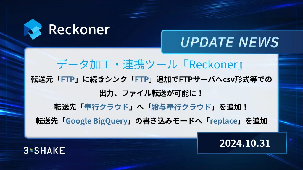 転送先FTPの追加、転送先奉行クラウド、ワークフロー一覧画面、転送先Google BigQuerySQLの機能拡張を行いました