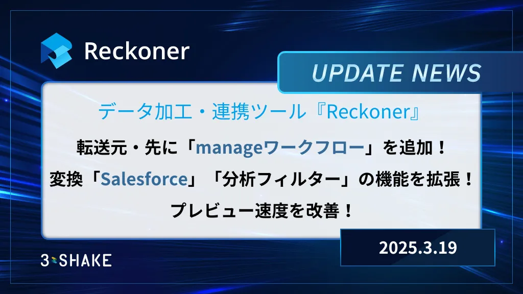 転送元・先manageワークフローの追加、変換Salesforce、フィルターの機能拡張、プレビュー速度の改善を行いました