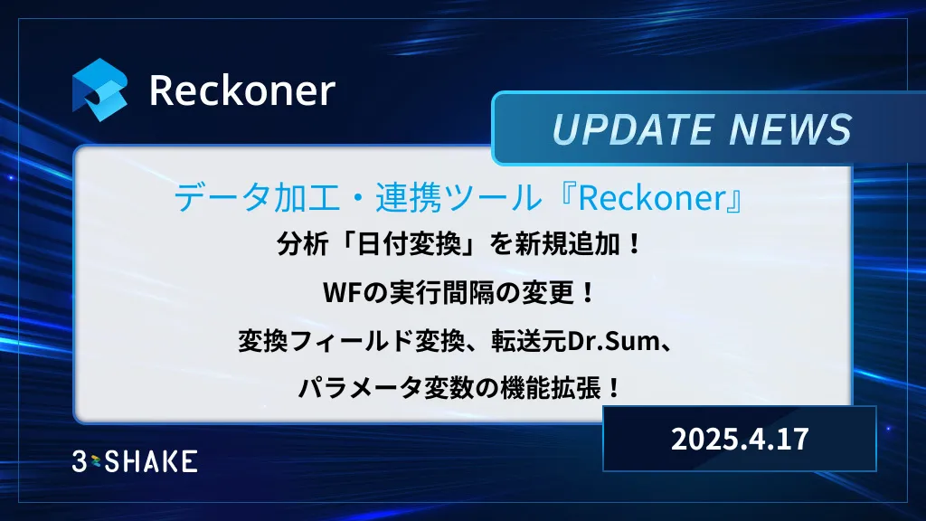 分析日付計算を新規追加、WFの実行間隔の変更、変換フィールド変換、転送元Dr.Sum、パラメータ変数の機能拡張を行いました