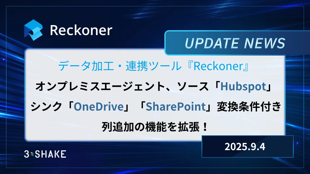 オンプレミスエージェント、ソースHubspot、シンクOneDrive、SharePoint、変換条件付き列追加の機能拡張を行いました